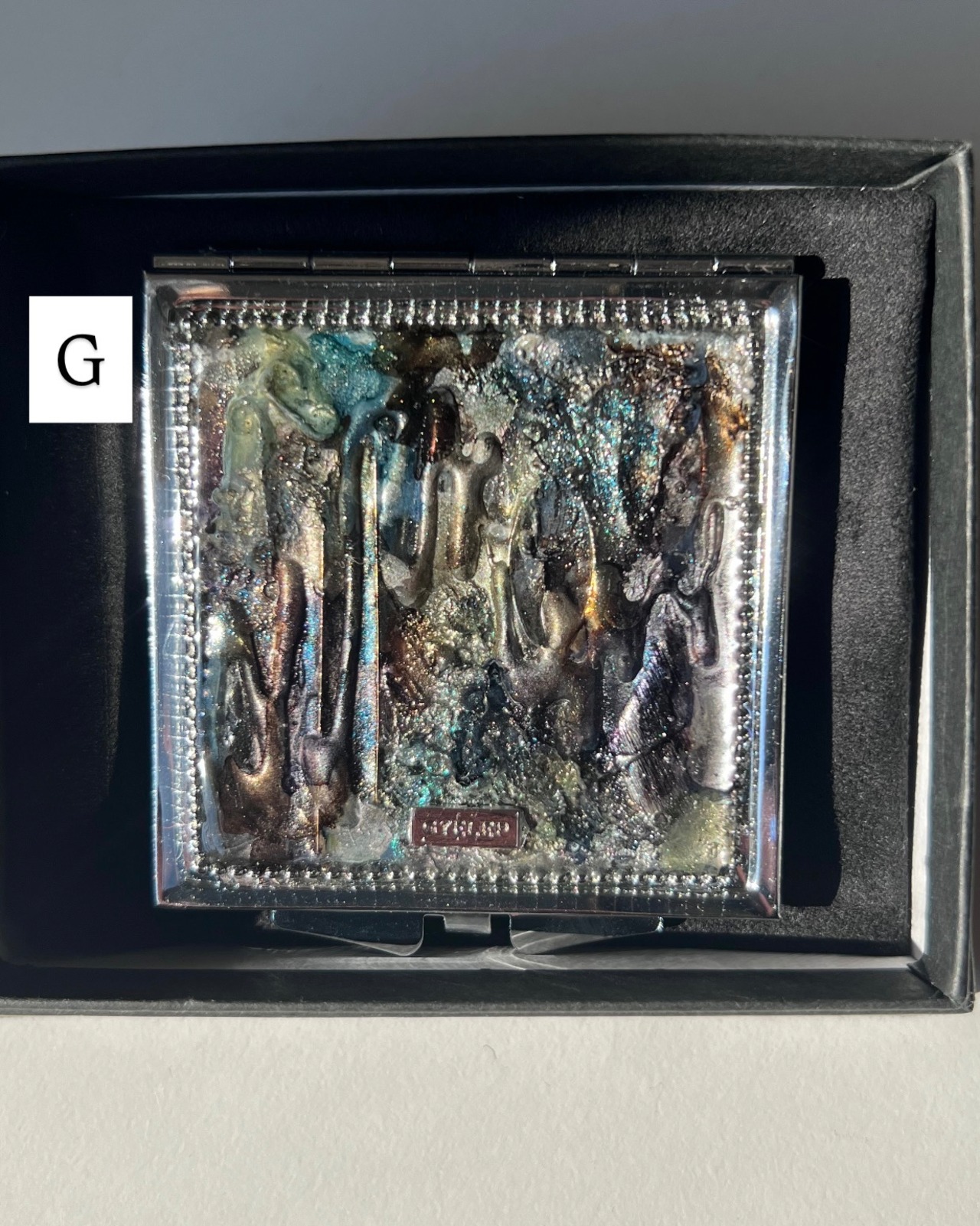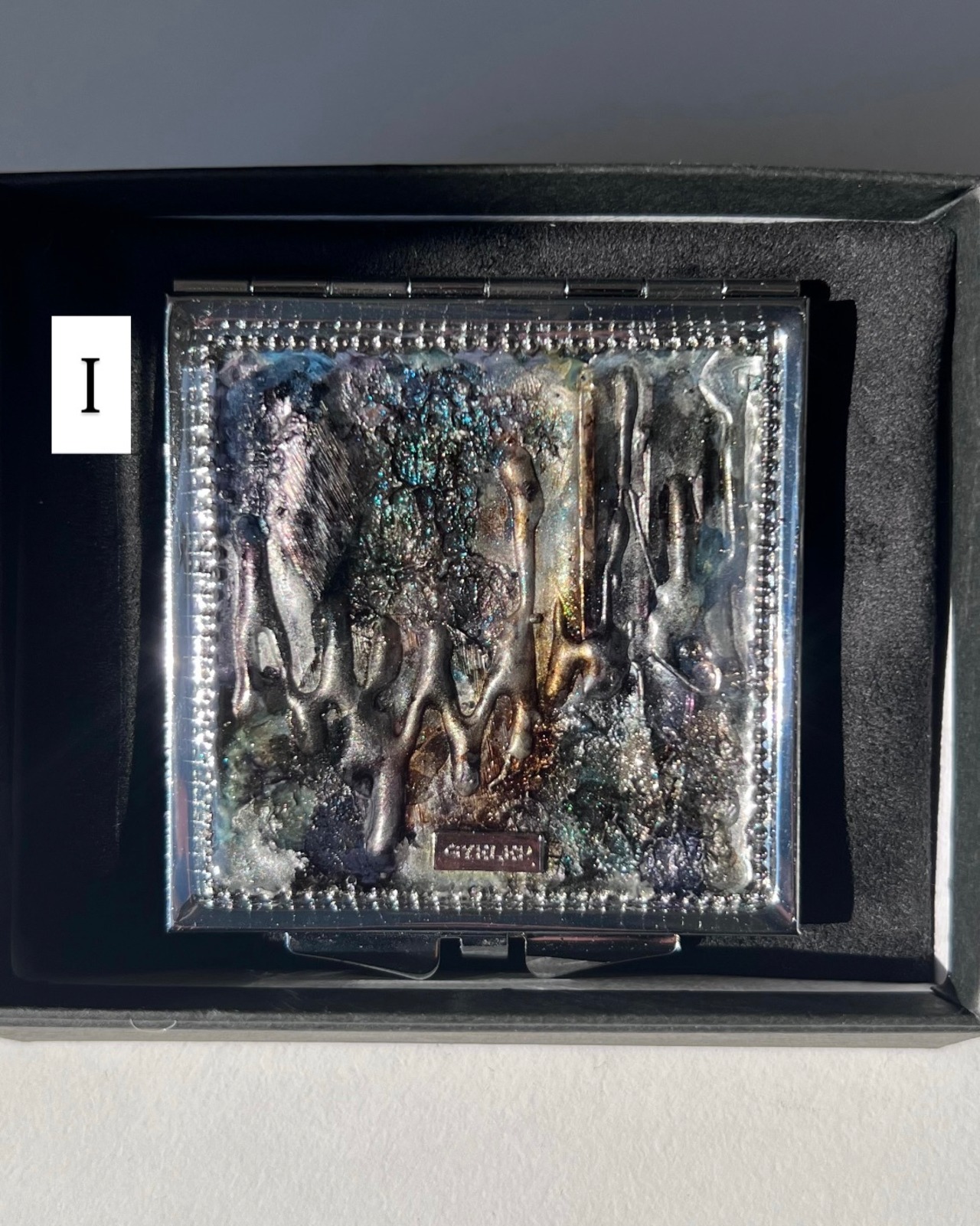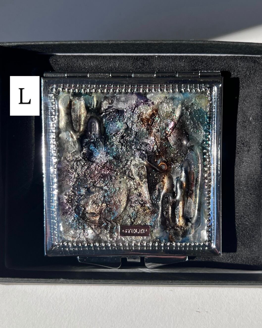 鉱物などをイメージしたニュアンスアートを施したコンパクトミラー。